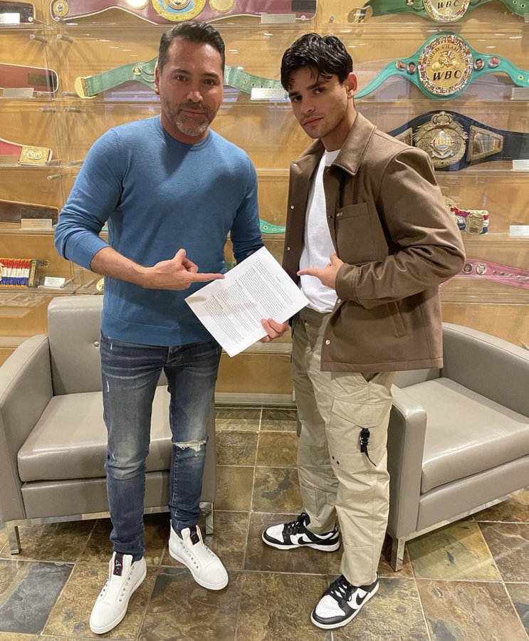 Oscar De La Hoya posted a picture on Instagram Tuesday night of himself and his star fighter Ryan Garcia. Both men are pointing at a paper in De La Hoya’s hand. “Verified,” De La Hoya posted alongside the picture. “Devil is in the details. April 15 let’s go!!! @kingryan @gervontaa.” The suggestion here is clear – a contract for a highly anticipated bout between Garcia and fellow undefeated star Gervonta Davis is now in Golden Boy promoter De La Hoya’s possession and is on the verge of being signed.