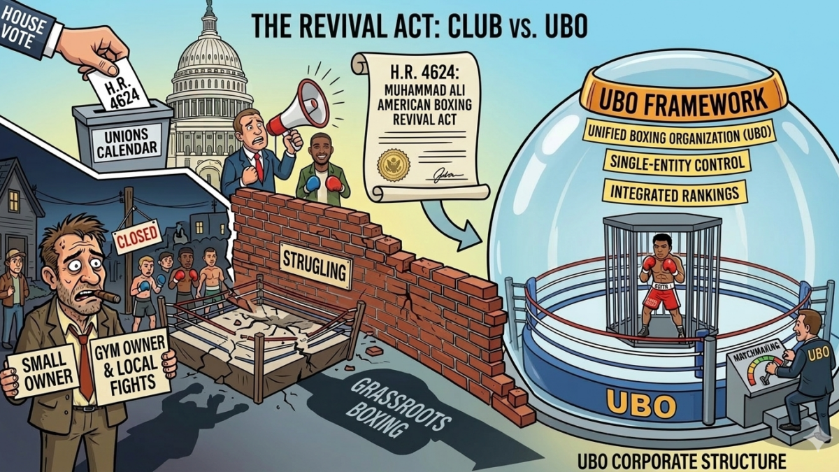For club promoters and independents, this bill was not written with you in mind. It was written to create a legal framework for a billion-dollar corporation to enter boxing on its own terms. Everyone else is collateral damage.