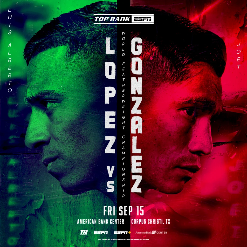 The IBF featherweight title was on the line Friday night in Corpus Christy, Texas, as Luis Alberto Lopez defended his crown against popular vet Joet Gonzalez. The fight was a scheduled twelve rounder and was the main event of an ESPN/Top Rank card. The 26-3-0 Gonzalez started off the first flicking out his jab. The 28-2 Lopez, on the other hand switched his pace repeatedly, which was indicative of his awkward style. Gonzalez continued to apply pressure in the second, though the frequent flurries of Lopez didn’t go unnoticed. The third saw Lopez land hard while Gonzalez continued his attack. By the fourth, the fight had worked itself into a pattern, with each man having his moments. Gonzalez pressed. Lopez fought in an in and out style.