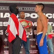 Things remained fast and furious in the fourth, though Matias’ patience early on in the fight may have been starting to pay off as he once again rocked Ponce near round’s end. The blistering pace continued into the fifth. Ponce was doing great work, but a body blow delivered at the end of a Matias’ combination sent the man to the mat. Ponce was able to beat the count and survived the round – but then, as he sat on his stool looking thoroughly beaten up, the fight was stopped by his corner.